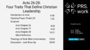 Acts Chapters 26-28: Four Traits That Define Christian Leadership (28 minutes)